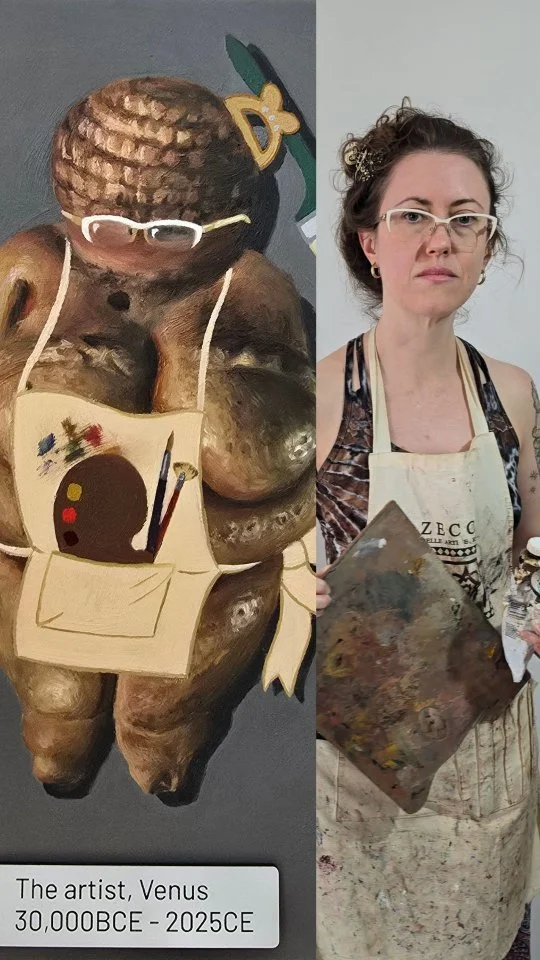 Jessica is a British-Australian artist based in Brighton, UK. Her work draws from a deep fascination with mythology, history, and the stories that shape human understanding of the world. Blending classical figurative painting with pop aesthetics, she creates visual dialogues between the ancient and the contemporary, the organic and the manufactured.
